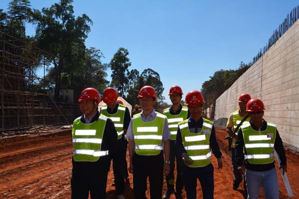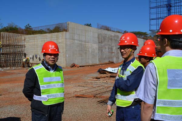 2014年10月上旬,公司總工程師胡鴻煌前往肯尼亞海外項目開展安全檢查工作。我公司總工程師胡鴻煌公司駐肯尼亞辦事處主任賀翔、項目主要管理人員的陪同下,對雙河項目的質量安全工作開展全面的檢查。