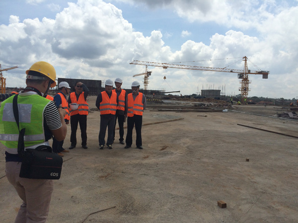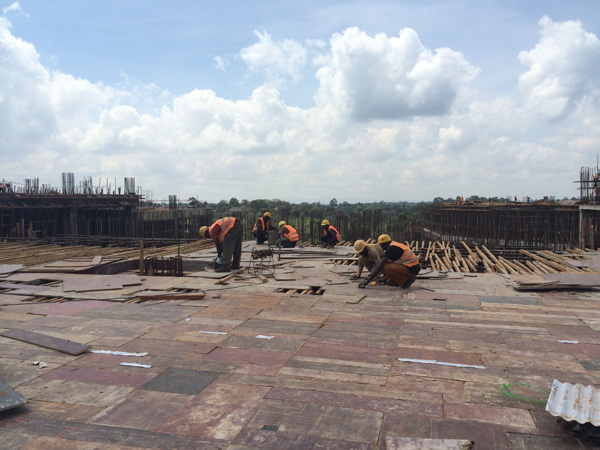 “雙河”項(xiàng)目是一個(gè)集零售商場、現(xiàn)代辦公樓、公共娛樂以及配套設(shè)施的綜合性工程,作為東非最大的在建城市綜合體,總建筑面積為18.2萬平方米,單層面積就超過四萬多平米。雖然出國前我對(duì)“雙河”項(xiàng)目就有一定的了解,但親臨現(xiàn)場,感受工地的壯觀,內(nèi)心仍然受到巨大的震撼。這個(gè)項(xiàng)目涉及到的工程類別較多,施工統(tǒng)籌及安全質(zhì)量監(jiān)控難度較大。在施工現(xiàn)場,我們看到各作業(yè)工種工作安排得井井有條,各類安全標(biāo)識(shí)及安全設(shè)施科學(xué)規(guī)范,雖然現(xiàn)場施工作業(yè)人數(shù)超過1000多人,但讓人感覺既熱火朝天,又忙而不亂有條不紊地進(jìn)行著。